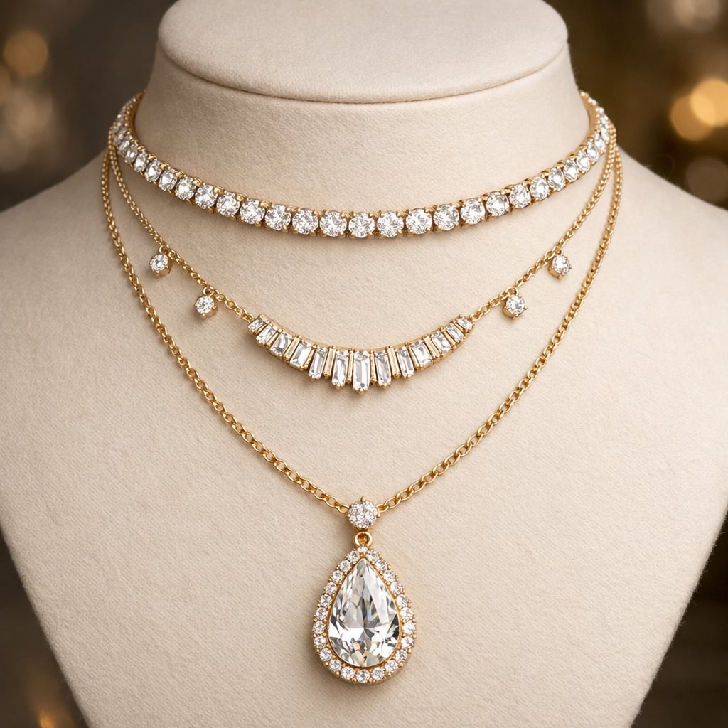Three chains in mixable lengths (16, 18, 20"). Each clasp hand-soldered.