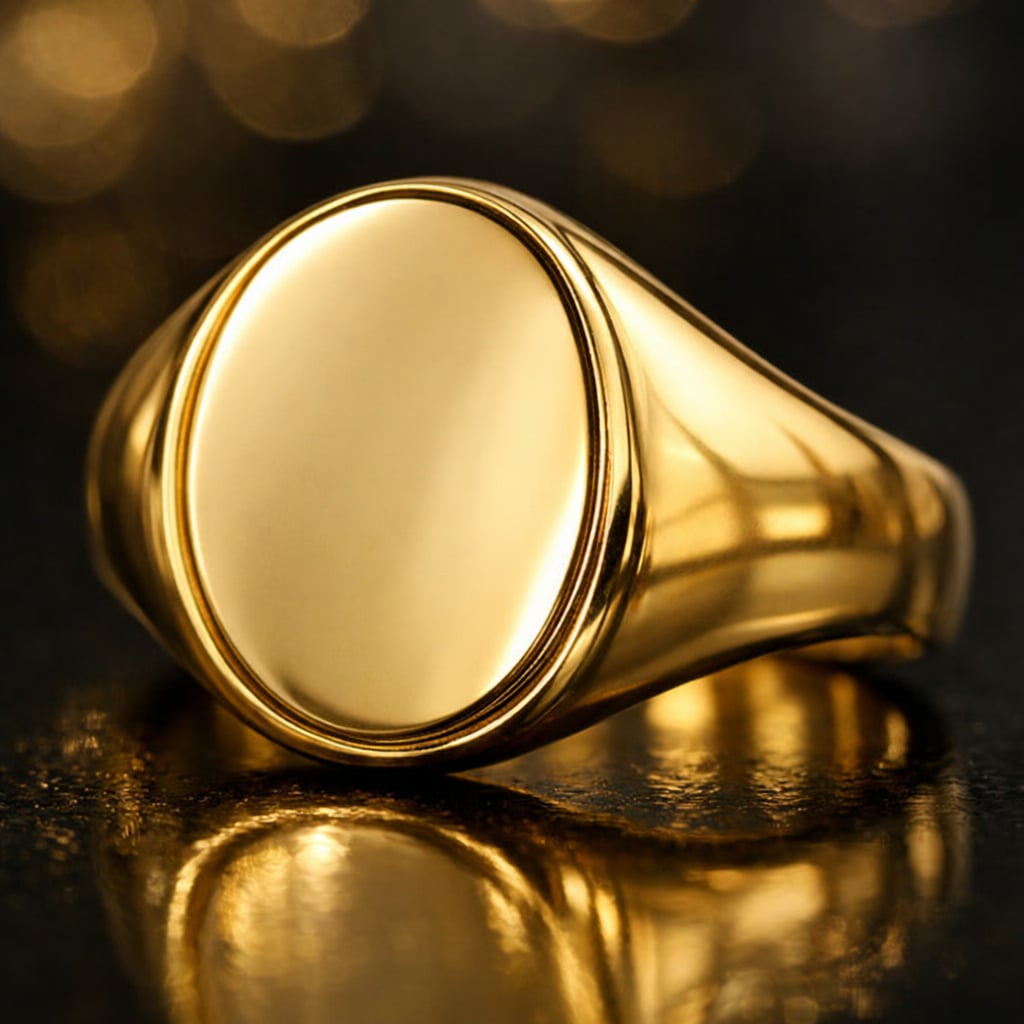 18k gold, polished face ready for hand-engraving by our master engraver.